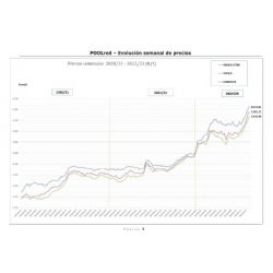 Se adjunta informe con la evolución semanal de precios en origen del Aceite de Oliva en sus distintas categorías, contrastando las fuentes de información disponibles, correspondiente a la semana 05 de 2024 (del 29 de enero al 04 de febrero).   Ligeras caídas de las cotizaciones medias con respecto a la semana anterior de todas las fuentes en prácticamente todas...