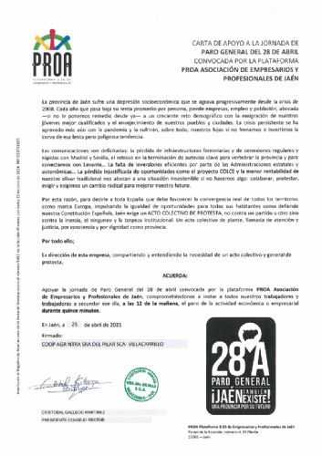 Nos sumamos al paro general de nuestra actividad a partir de las 12:00 de la mañana y durante quince minutos convocado por PROA Asociación de Empresariosy Profesionales de Jaén.