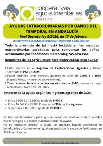 Os trasladamos una serie de observaciones que hemos recibido de Cooperativas Agro-alimentarias de Jaén.